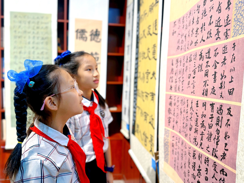 新華網南寧9月30日電(記者范超)乙巳金秋,文脈流芳。9月28日,南寧市濱湖路小學教育集團五校區師生齊聚浸潤千年儒風的南寧孔廟,舉行“以書載道 以筆潤心”主題書法展活動。