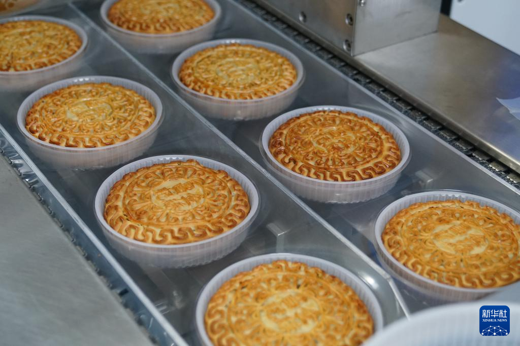 圖為生產線上的傳統月餅。新華社記者 趙歡 攝