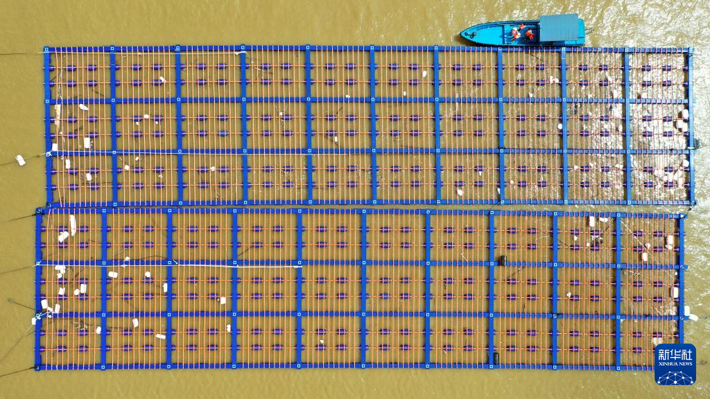 10月7日,當地群眾在檢查蠔排是否受損(無人機照片)。