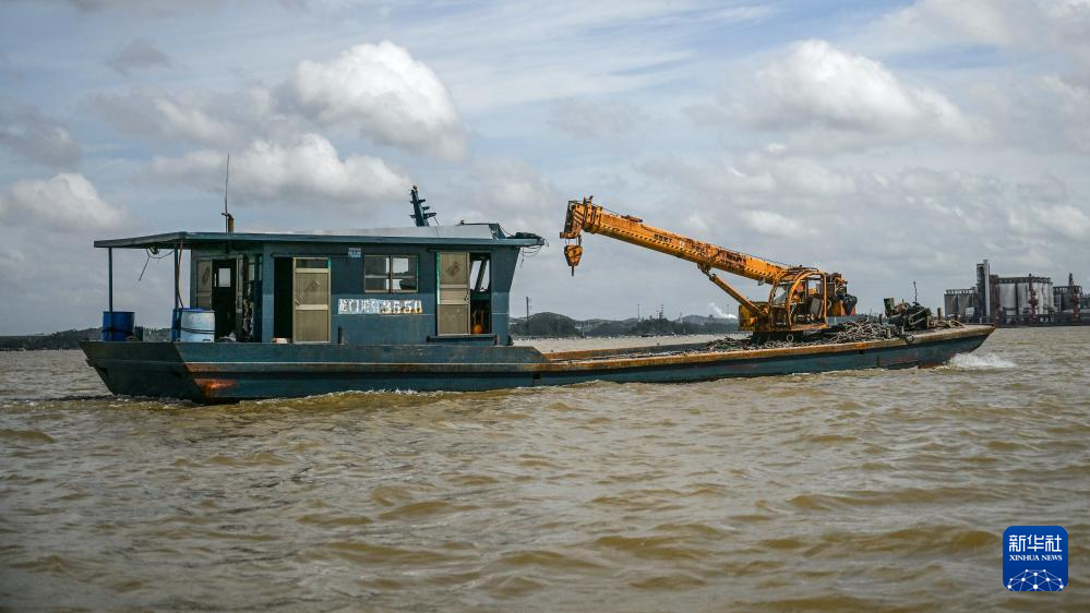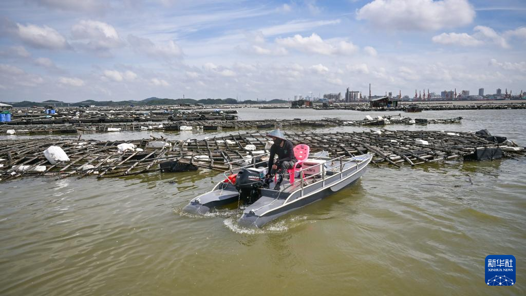 10月7日,一艘修補船開往茅尾海修補受損蠔排。