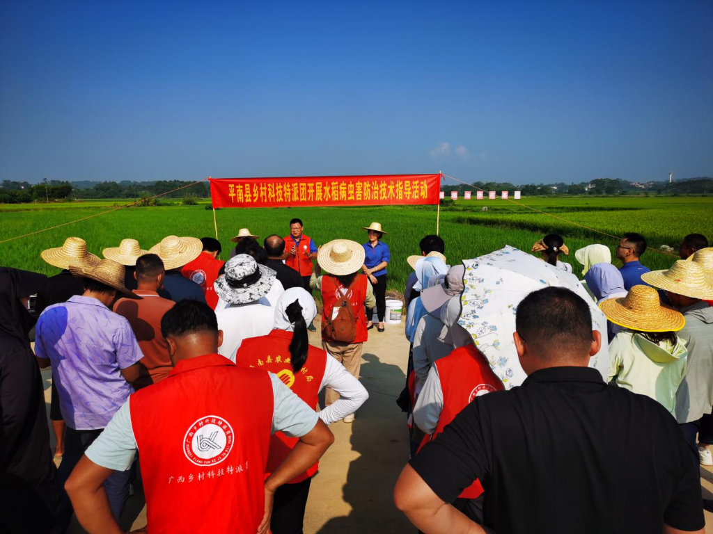 此前“樺加沙”“博羅依”“麥德姆”臺風過境,平南縣水稻細菌性條斑病、白葉枯病等病蟲害呈加重態勢。10月4日,平南縣“一縣一團”的鄉村科技特派員深入東華鎮、安懷鎮、平南街道等地村屯進行踏田調查,摸清病蟲害底數。此次集中培訓,特派員們同步啟動水稻病蟲害聯防聯控,專家們既講“大戰略”,也教“土辦法”——從藥劑配比到噴霧時機,從田間排水到天敵保護,手把手破解農戶防治難題?!巴昱_風后病蟲害總讓我發愁,今年有特派員專家上門指導,我們的稻子有救了?!狈N糧大戶廖柏奇說。