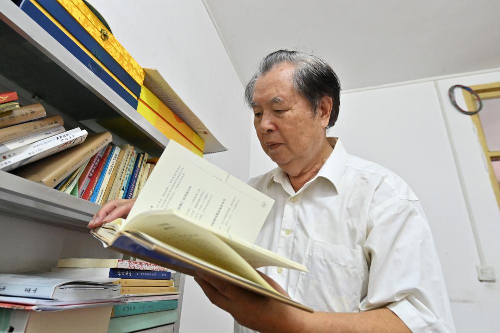 10月15日,羅伏龍在廣西巴馬瑤族自治縣縣城的家里看書。新華社記者陸波岸 攝