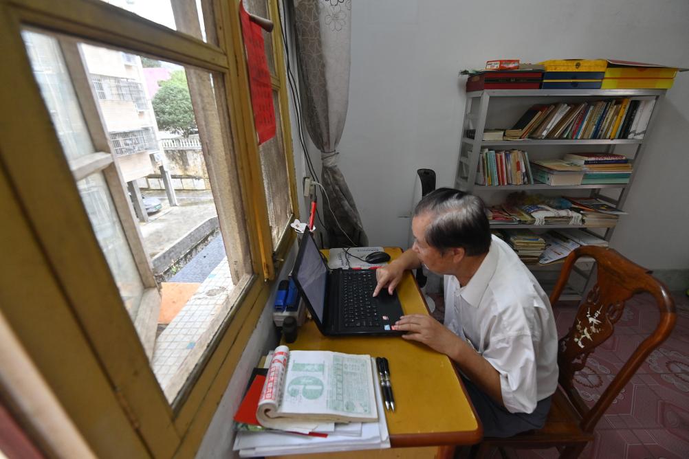 10月15日,羅伏龍在廣西巴馬瑤族自治縣縣城的家里寫作。新華社記者陸波岸 攝