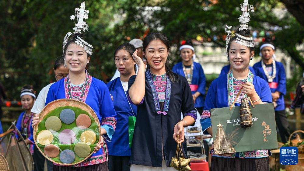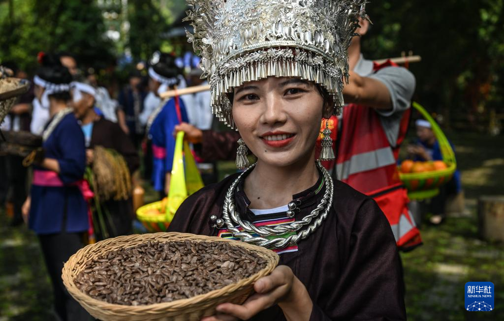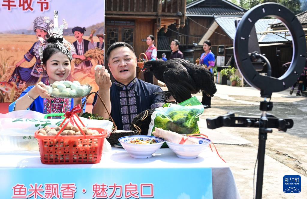 10月17日,廣西三江侗族自治縣5個鄉鎮的群眾聚集在良口鄉產口村,開展形式多樣的慶豐收活動。