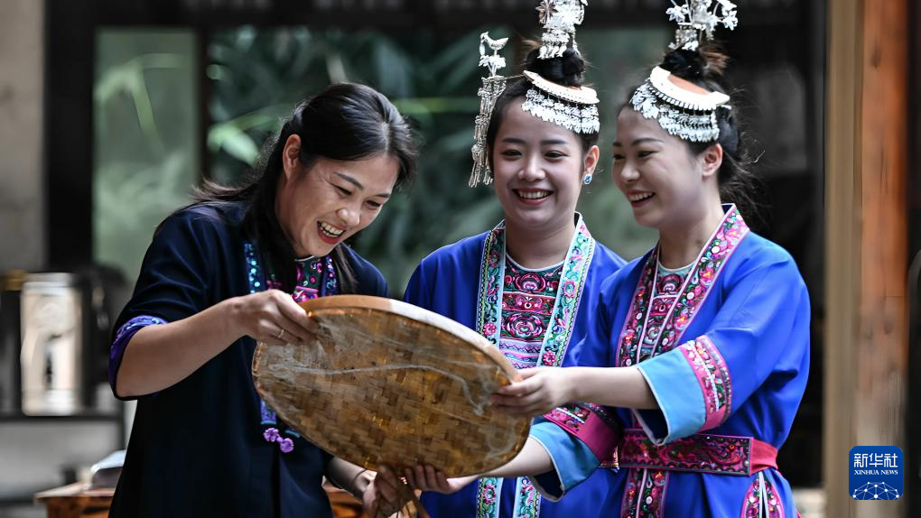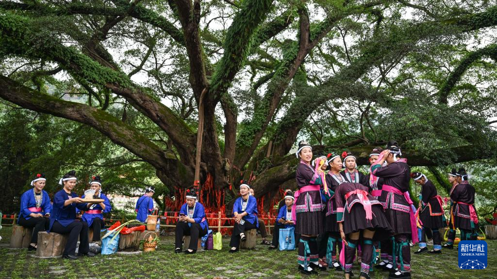 10月17日,侗族群眾聚集在良口鄉產口村的古榕樹下,為展演做準備。