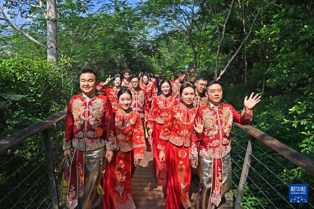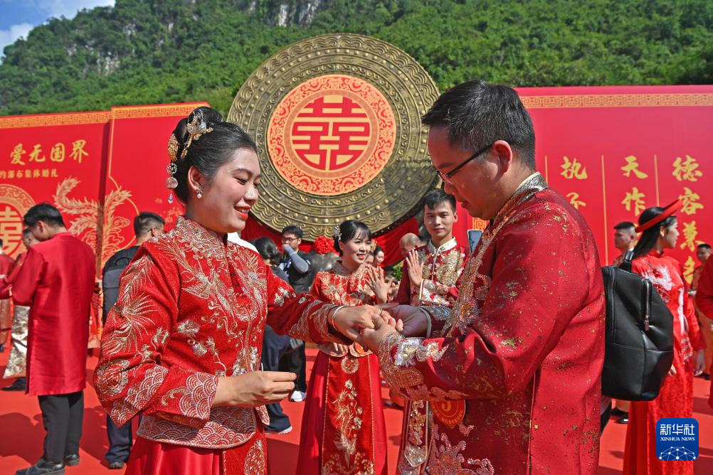 10月18日,“會聚良緣 愛無國界”中越德天(板約)瀑布集體婚禮在廣西大新縣中越德天(板約)瀑布跨境旅游合作區舉行,中越兩國39對夫妻參與,除新婚夫妻外,還有金婚、銀婚夫妻參與活動。