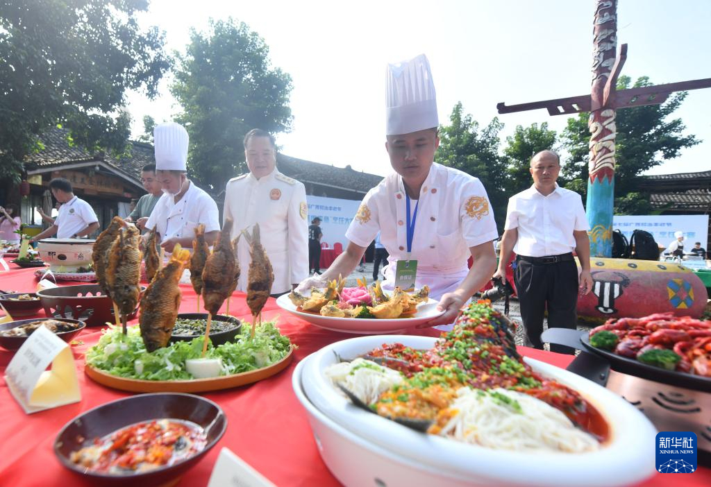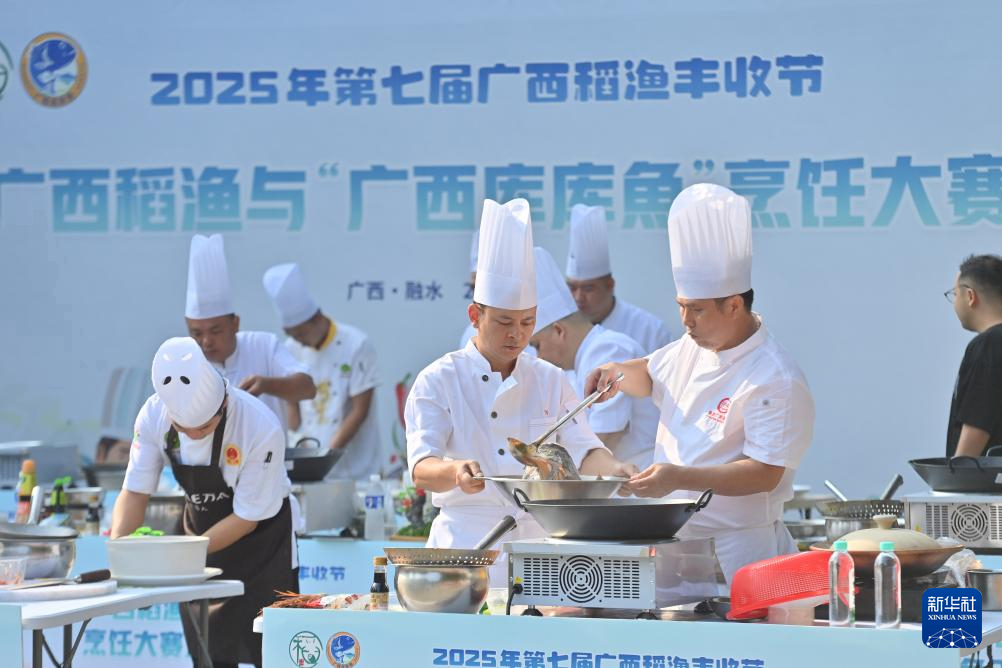 10月18日,在柳州市融水苗族自治縣夢嗚苗寨,參賽選手在第七屆廣西稻漁豐收節烹飪大賽中展示廚藝。