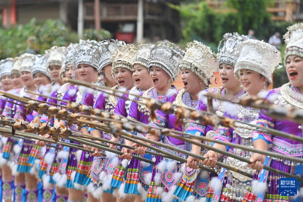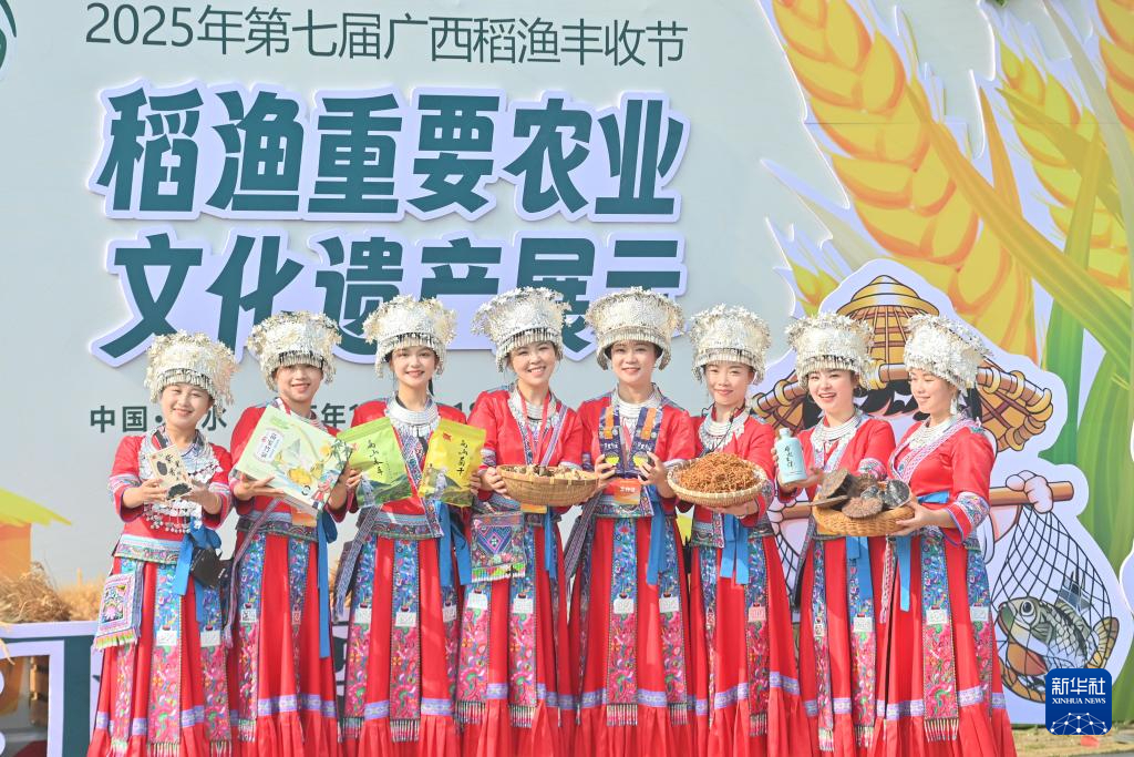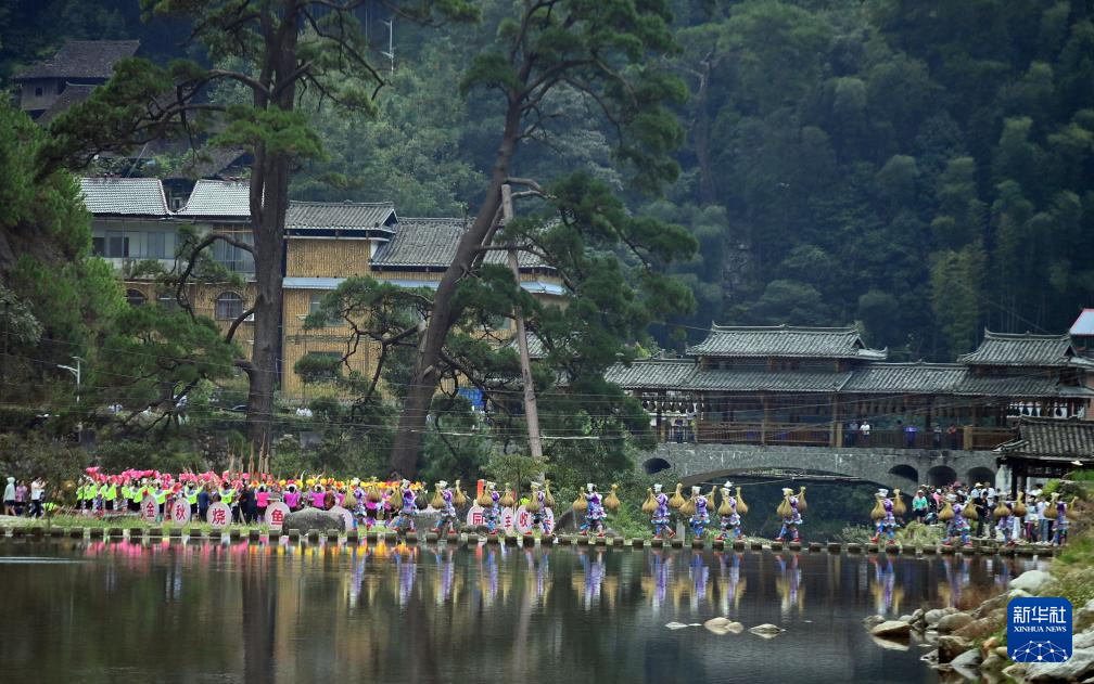 10月18日,在柳州市融水苗族自治縣安太鄉培秀村,村民們展示稻漁文化。