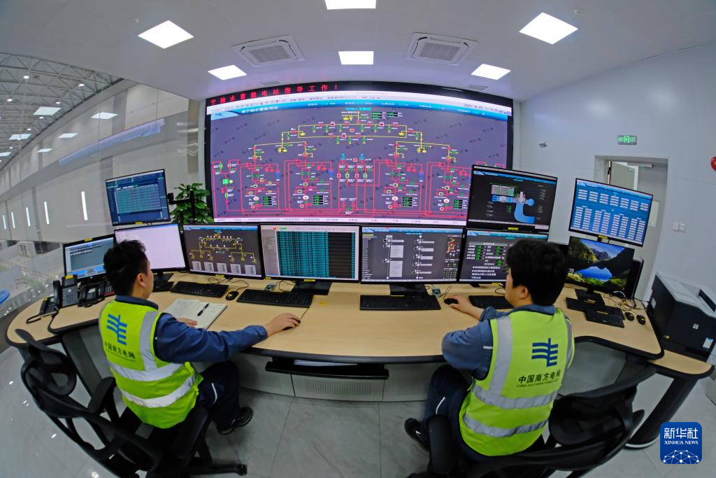 這是10月25日拍攝的南寧抽水蓄能電站監控室。