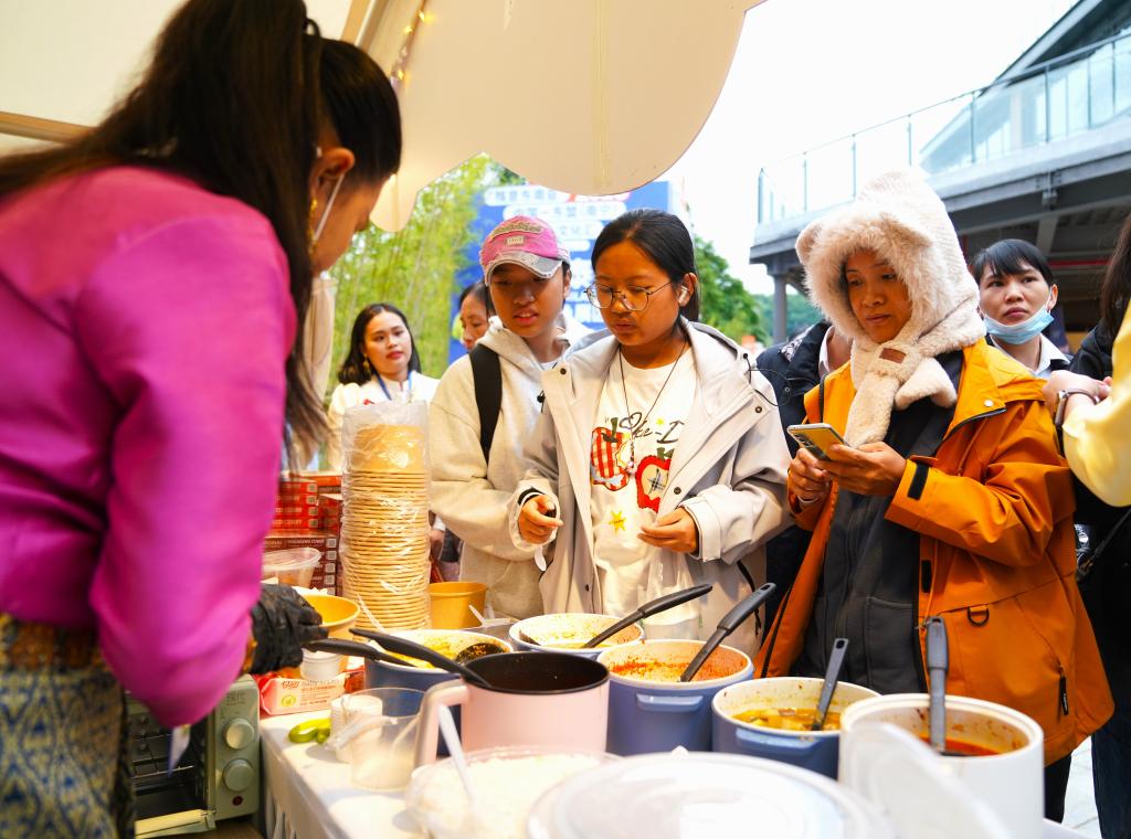 華燈初上,游客們被風雨橋上飄來的陣陣香氣吸引而來。泰國船面、馬來西亞蝦片、越南春卷……100多家中外餐飲企業帶著自家的拿手美食,亮相“筷意東南亞”2025年中國—東盟(南寧)美食文化匯活動。游客們在品嘗異域美食的同時,還能聽大廚們講述美食背后的文化故事。