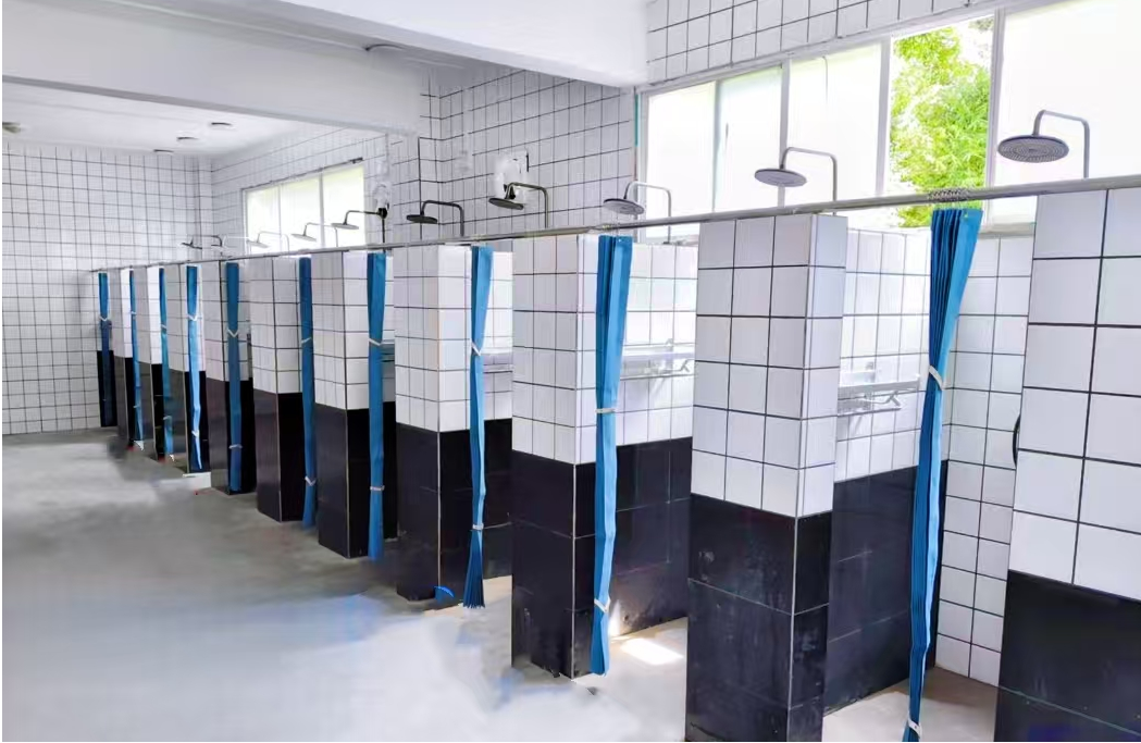 “粵桂協作不僅帶來資金,更注重細節設計?!笔┕へ撠熑私榻B,考慮到孩子們的身高差異,花灑按照1-6年級分段設置,最低處距地面1.2米,確保低年級學生也能方便使用。