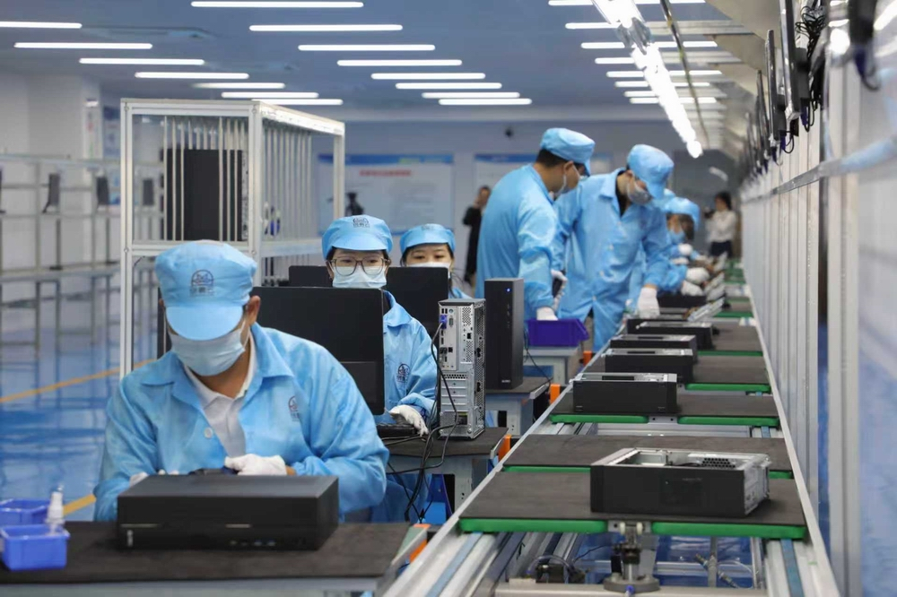 在創鵬云智造(廣西)生產基地,工作人員正在生產組裝計算機。黃玉瑩 攝