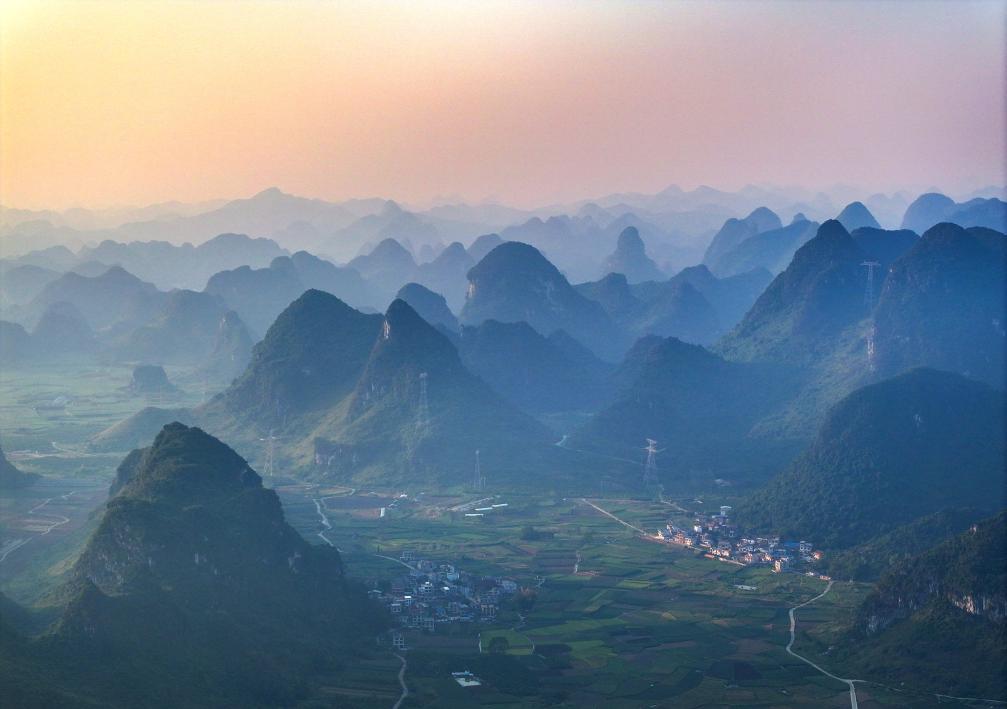 這是群山環繞的桂林市陽朔縣興坪鎮鄉村(2021年4月25日攝)。