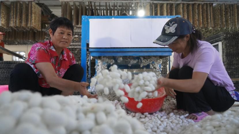“基地采用‘四齡蠶’養殖技術以及智慧蠶房監測系統,有效縮短蠶農養蠶周期,提高養蠶存活率,還可以節省桑葉和石灰等成本,提高蠶繭品質和產量?!惫排铈偵侠舜逦敝魅嗡{美珠說,在科技的帶動下,蠶農一年可以多養2-4批蠶,2個人一批可以輕松喂養3-4張,比原來翻倍。