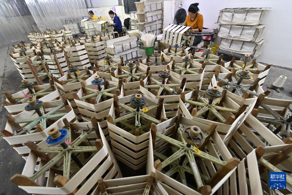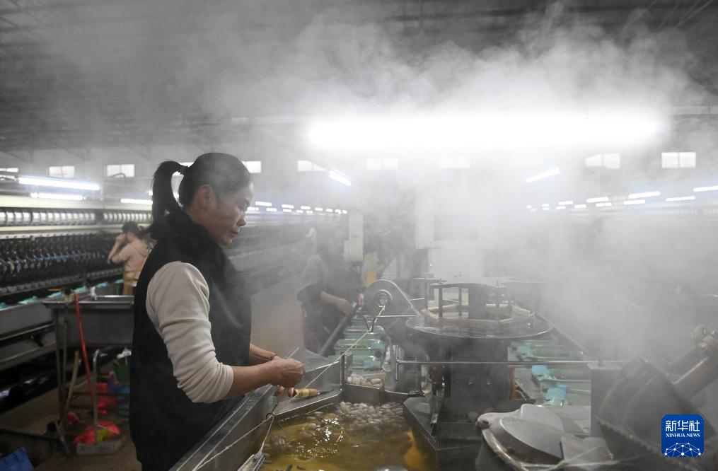 11月4日,工人在廣西忻城縣一家絲綢企業進行生產作業。