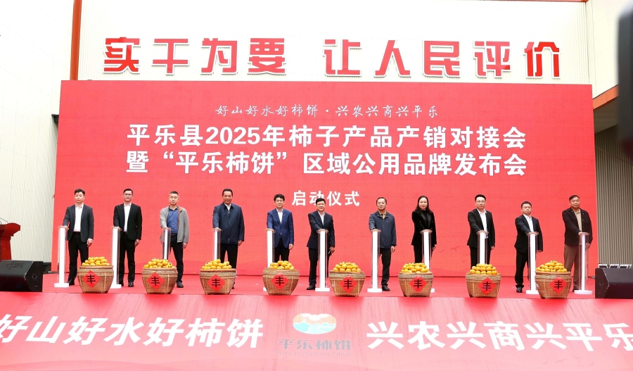 11月8日,“好山好水好柿餅·興農興商興平樂”平樂縣2025年柿子產品產銷對接會暨“平樂柿餅”區域公用品牌發布會在平樂縣沙子鎮舉行,正式發布“平樂柿餅”區域公用品牌,標志著平樂柿餅邁入了品牌化發展的新階段。當天,20多家外地客商與當地企業現場簽訂了平樂柿餅購銷協議,總金額超11億元。