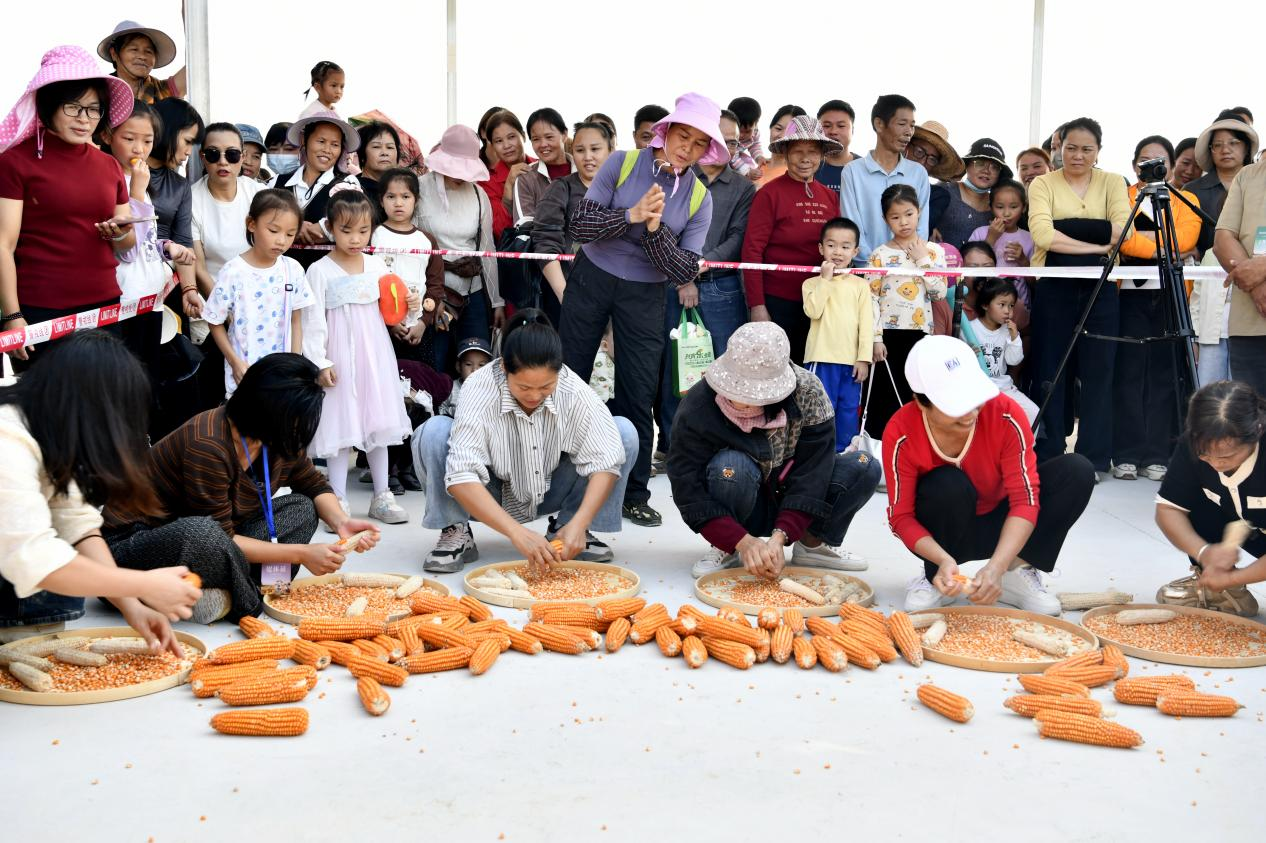 活動分為主會場和分會場。城廂鎮主會場以“農產展銷+文化傳承+農事體驗”為抓手,打造沉浸式豐收場景。開幕式上,彩調《四門摘花》、歌伴舞《雙腳踏上幸福路》、農產品走秀等文藝演出節目輪番登場,傳達各族群眾對五谷豐登的喜悅與對美好生活的向往。農產品展銷區里,糧食、果蔬、畜禽、水產等各類名特優農產品琳瑯滿目,吸引游客駐足品嘗和選購?,F場還有主播直播帶貨,為“興賓好物”拓寬銷售渠道。捉豬、摸魚、剝玉米、割水稻等傳統農事競技趣味十足,豐收采摘游、鄉村美食體驗游等特色活動人氣高,游客與村民共享豐收喜悅,繪就出一幅農旅相融的生動畫卷。