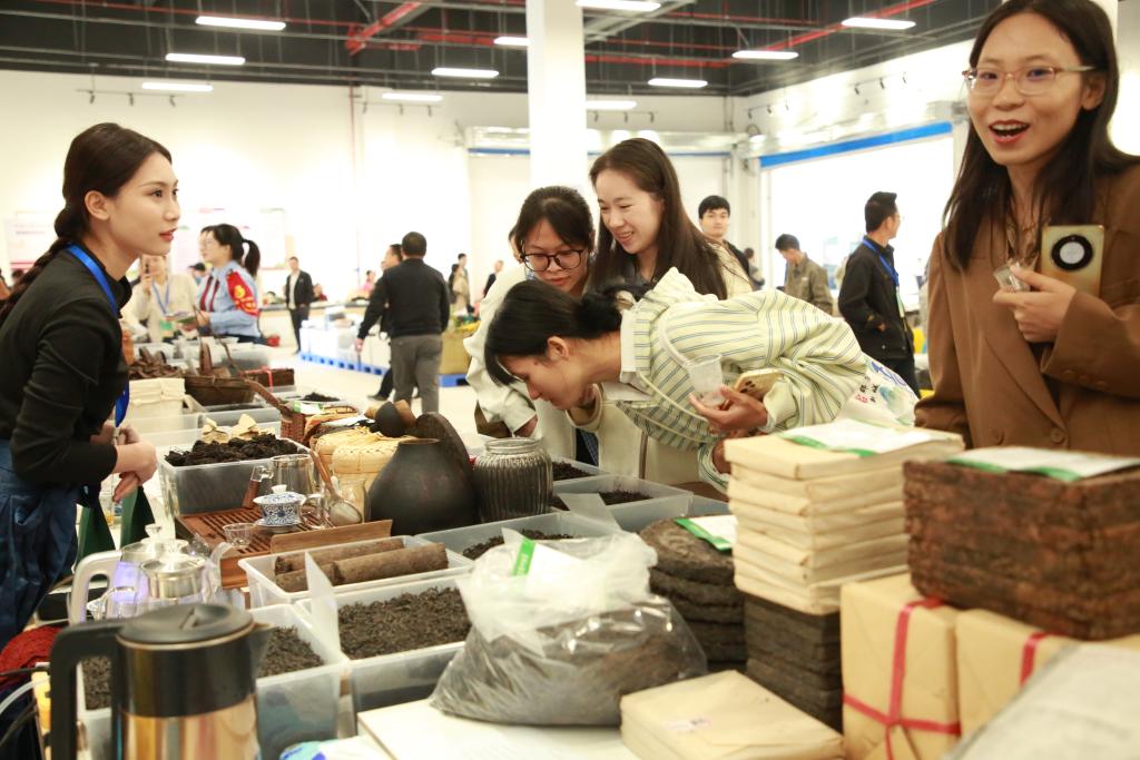 2025中國黑茶大會期間,黑茶名品展吸引了不少茶友前來觀展。(楊揚 攝)
