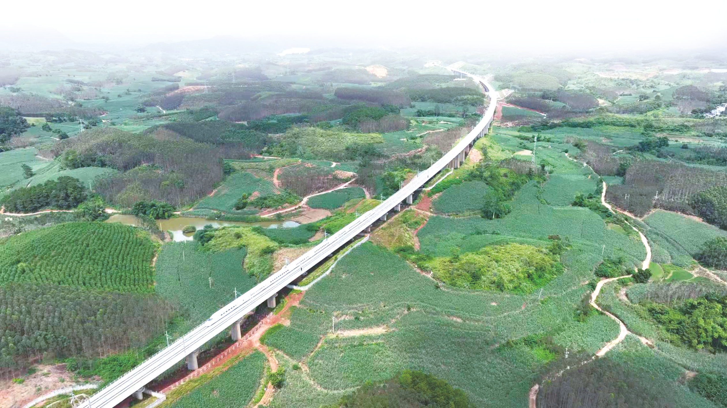 滿圖試運行列車行駛在南憑高鐵崇憑段線路上。韋建松 攝