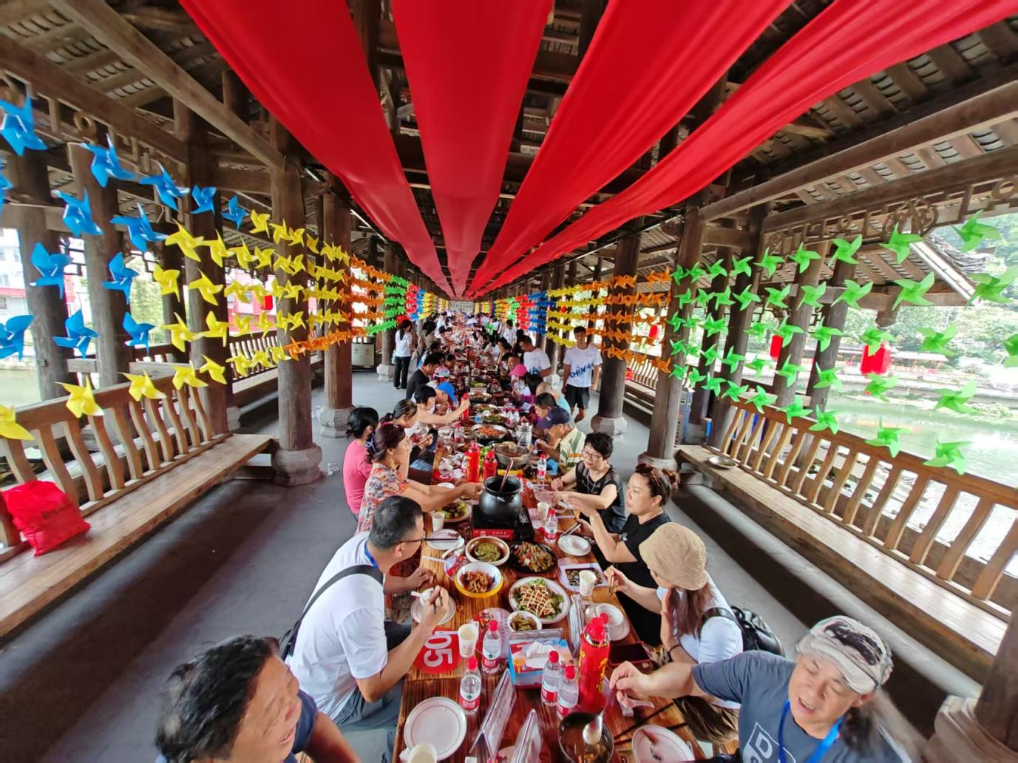 游客在體驗長桌宴。資源縣融媒體中心供圖