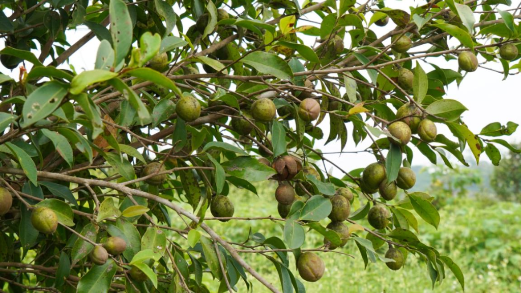 在維都林場,香花油茶果掛滿枝頭。閉秀玉 攝