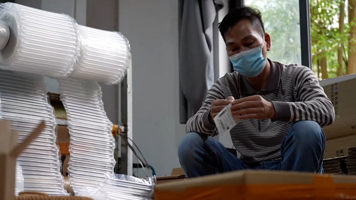 在中越邊境廣西東興市電商小鎮的倉庫內,主播正穿梭在一排排的貨架間,充滿熱情地為網友進行講解。箱包、餐盤、果籃、花瓶……款式精美的各式產品在貨架上整齊擺放著,它們基本都產自越南。