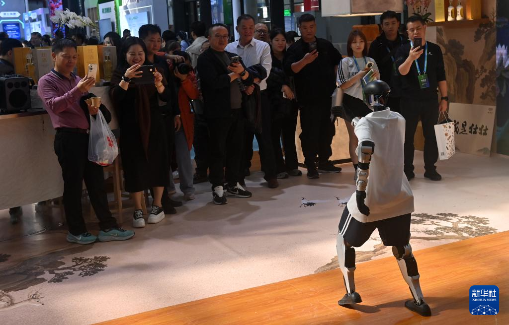 11月22日,在廣西南寧國際會展中心,人們在展覽現場觀看機器人表演。