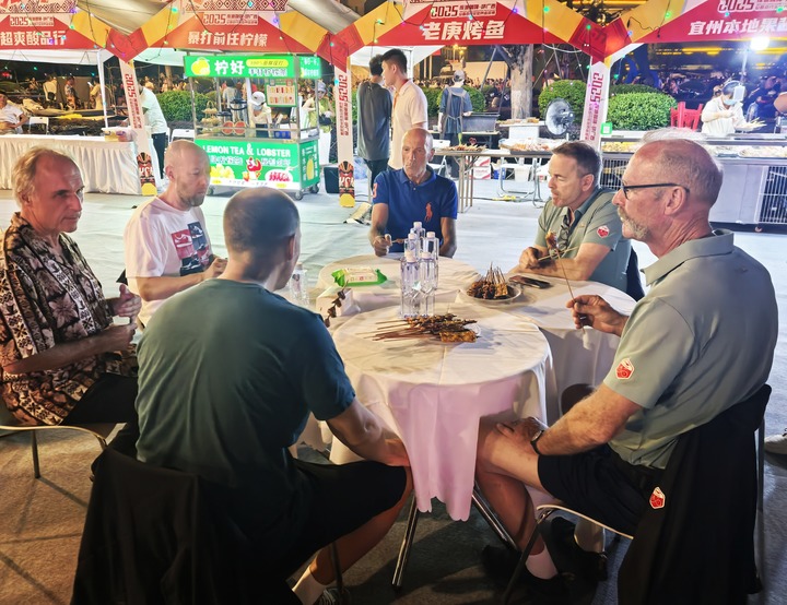 2025環廣西公路自行車世界巡回賽期間,外賓在河池宜州品嘗果醬燒烤。新華社記者 王楚然 攝