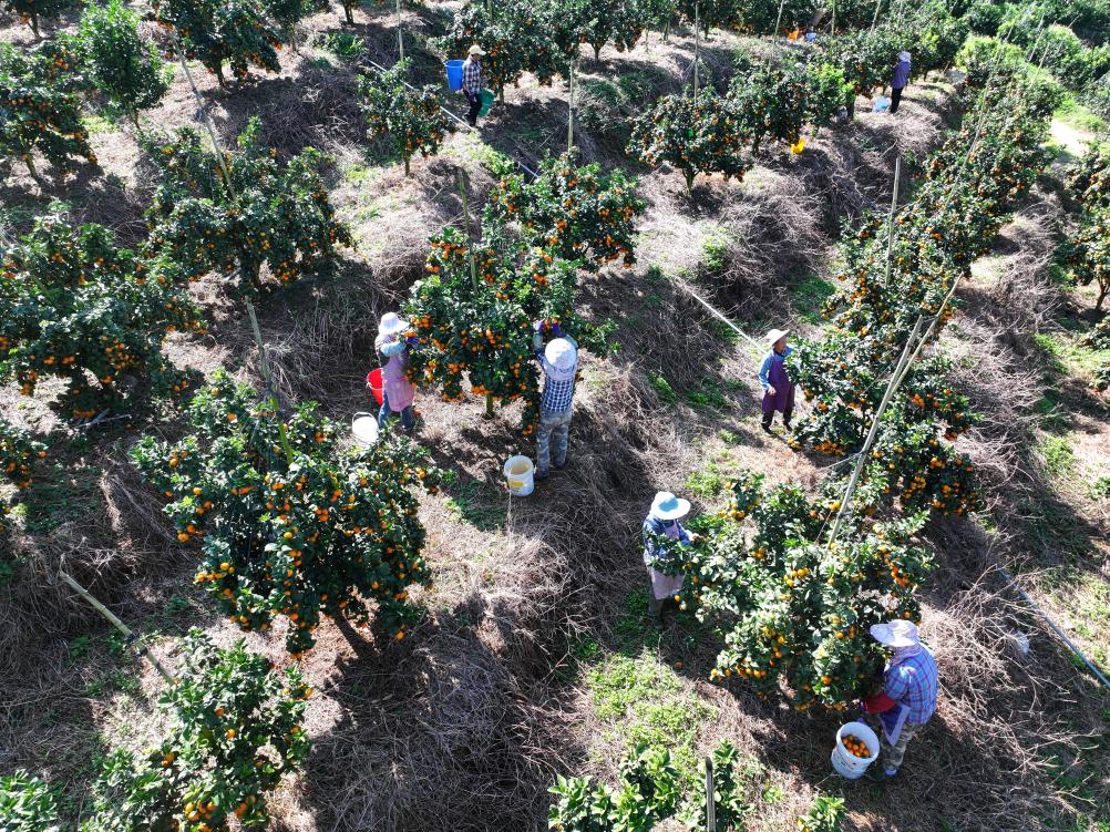 10月30日,村民在西林縣那勞鎮洞堅村采摘金秋沙糖桔(無人機照片)?!?a href="../../../20241031/ccf2401a83984744a4c3d42f5a101d42/c.html" target="_blank">詳細>>
