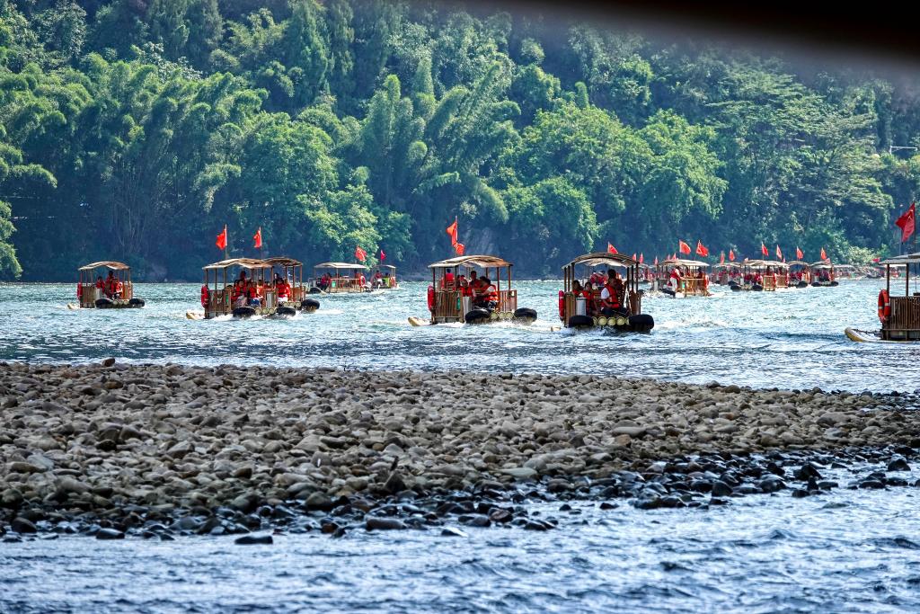 2025“桂野仙蹤”廣西戶外運動體育消費嘉年華系列活動之一的陽朔首屆遇龍河竹筏競速挑戰賽現場?!?a href="../../../20251109/c12bfc9b74be45c687fac0bab30a3108/c.html" target="_blank">詳細>>