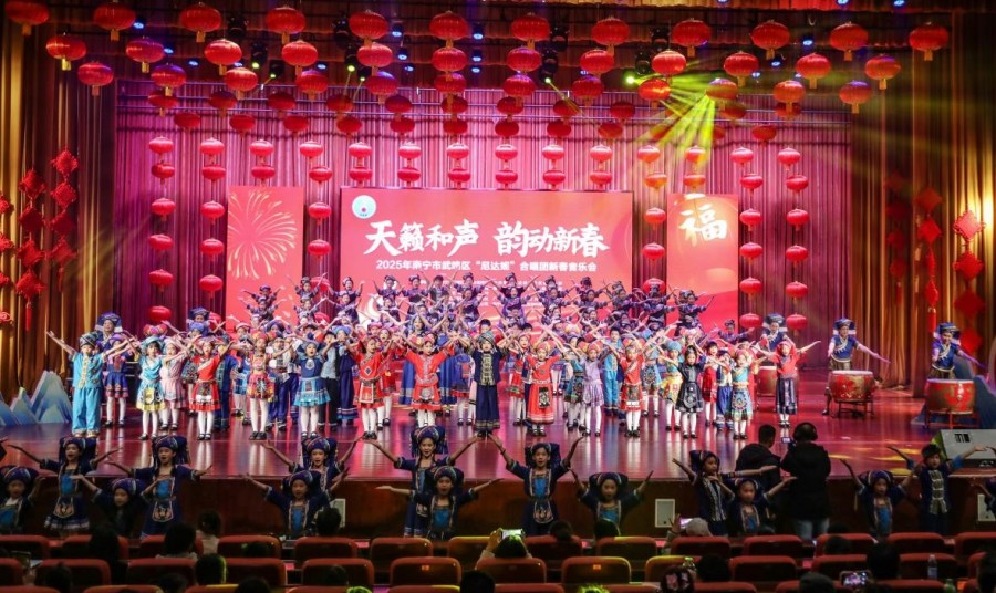 武鳴“三月三”民族服飾秀現場 據了解,武鳴圍繞文化、體育、各鎮、文旅企業、經貿五大板塊推出17項精彩活動,全方位展現壯族文化的深厚底蘊與現代活力?!?a href="../../../20250404/2cc738ff023a4575ae4970abac280d9f/c.html" target="_blank">詳細>>