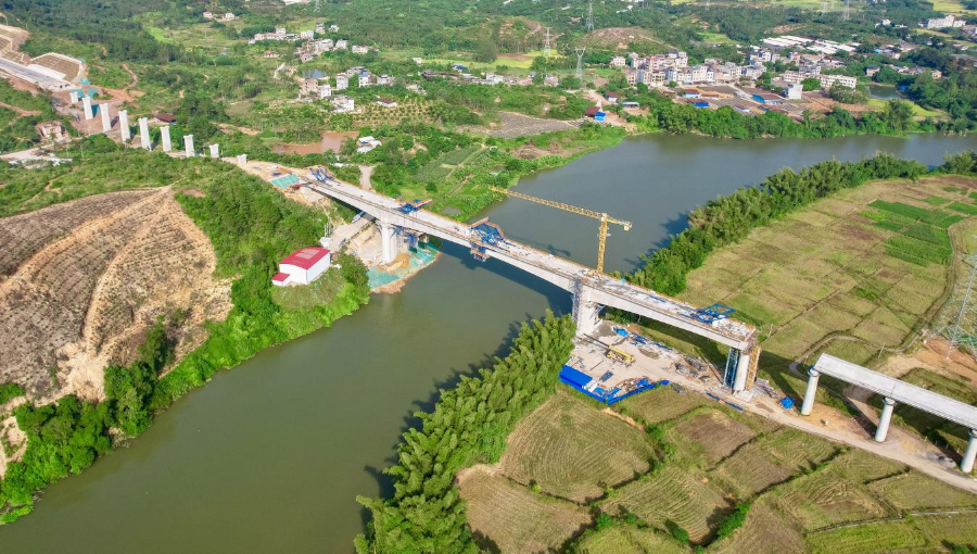 玉岑鐵路容縣北流河特大橋連續梁成功合龍
