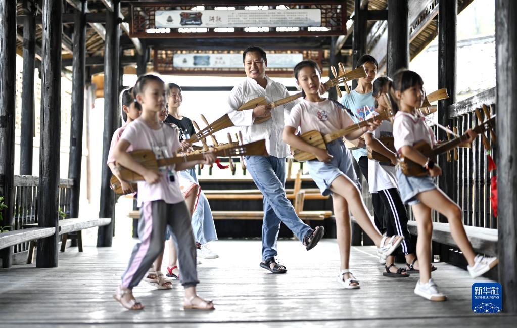 暑假期間,在廣西柳州市三江侗族自治縣,許多民間非遺文化傳承人以志愿者的身份,在該縣各鄉村的新時代文明實踐站開設公益非遺課堂,教孩子們學習侗族大歌、侗族琵琶歌、侗笛等非遺技藝,更好地讓侗族傳統文化在侗鄉薪火相傳。