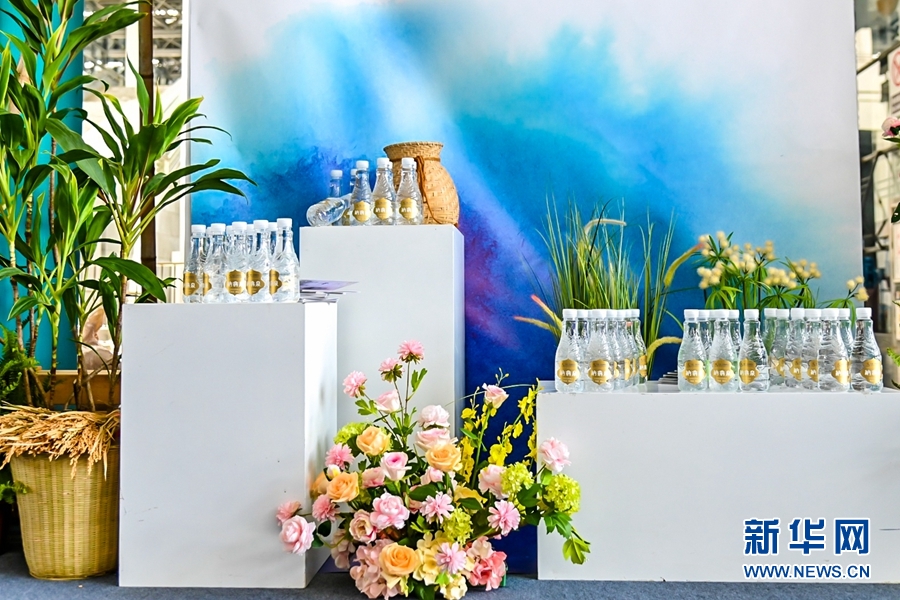 啟動儀式現場的羅城山泉產品展示。新華網發 莫文魁 攝
