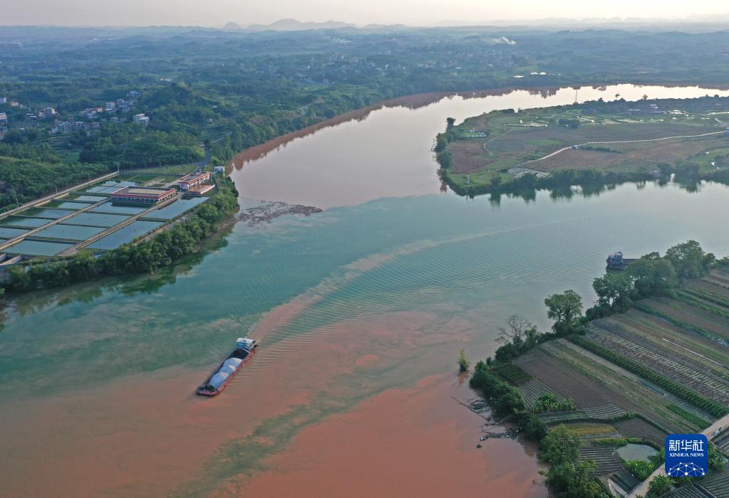 三江口地處廣西南寧市江南區江西鎮,左江與右江在這里匯合后成為邕江。受近日上游降雨影響,左江江水渾濁發黃,渾黃的左江水與清澈的右江水在三江口水域交匯。