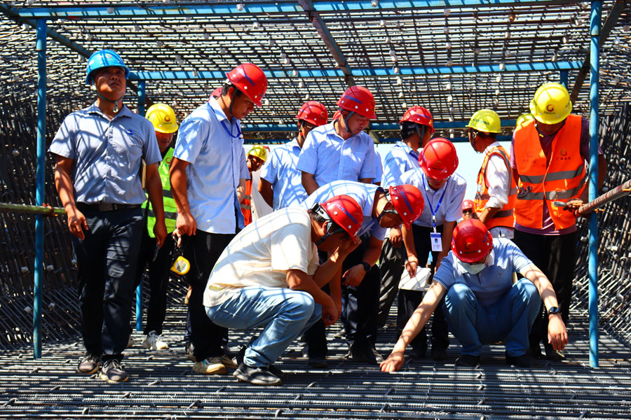 專家組現場實地核查鋼筋綁扎質量(陳迪姸攝)