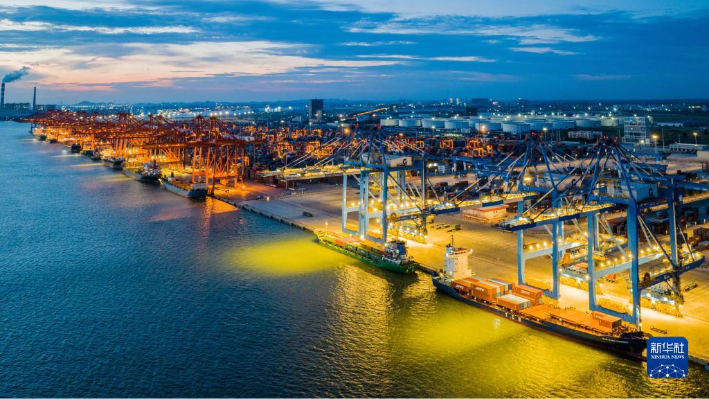 華燈初上的欽州港(2022年9月13日攝,無人機照片)。
