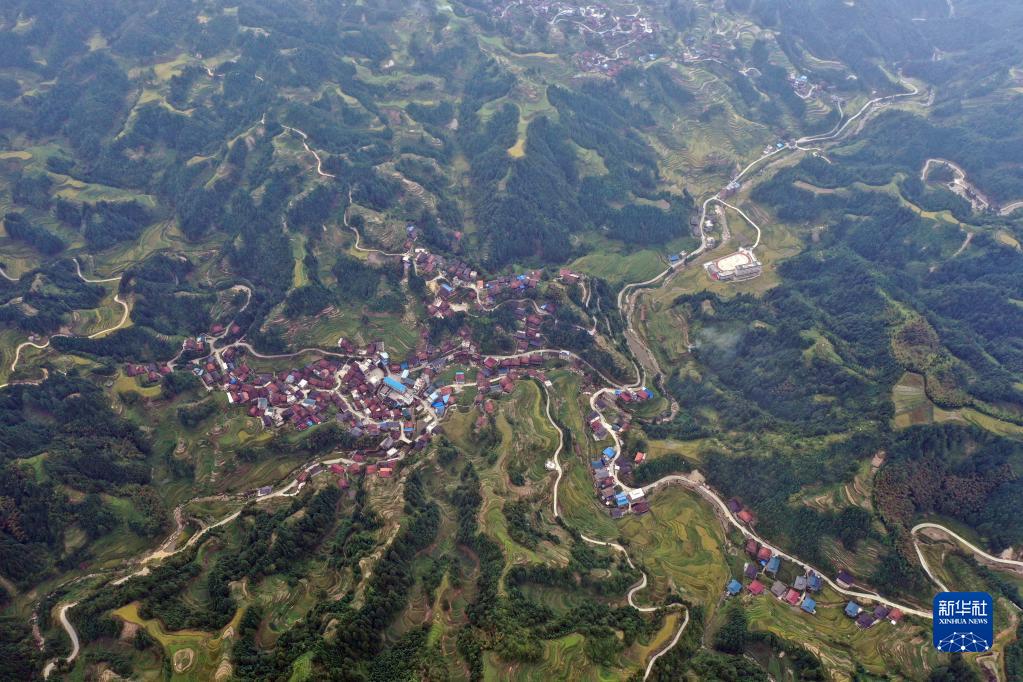 這是廣西融水苗族自治縣桿洞鄉堯告村的村屯公路(2022年9月11日攝,無人機照片)。