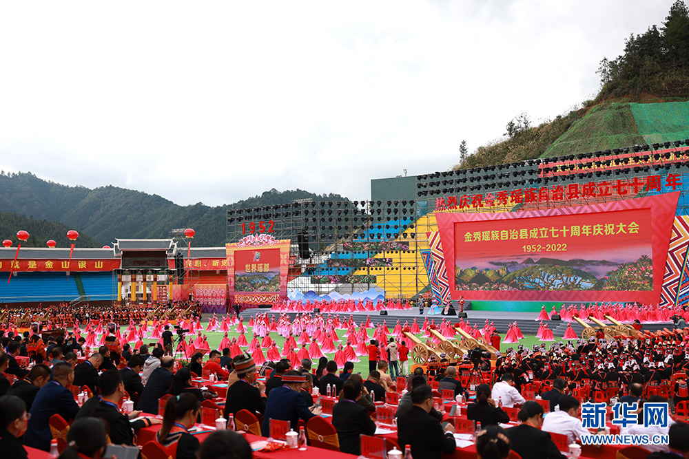 11月28日上午,金秀瑤族自治縣成立70周年慶祝大會舉行。