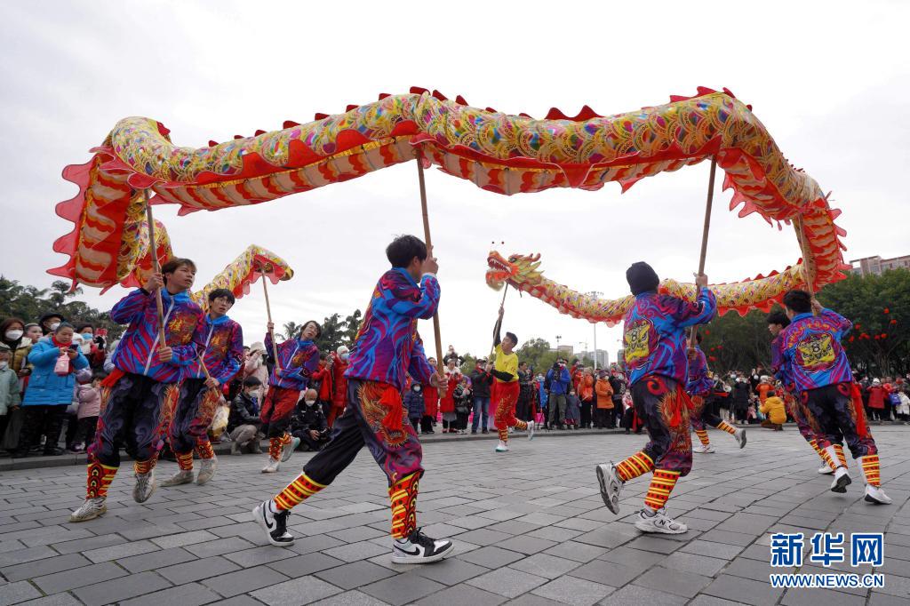 1月18日,在廣西桂林市靈川縣,人們在春節喜樂嘉年華活動上表演舞龍。