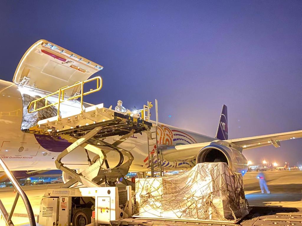 圖為南寧吳圩國際機場國際出港航班正在裝載貨物。(受訪者供圖)