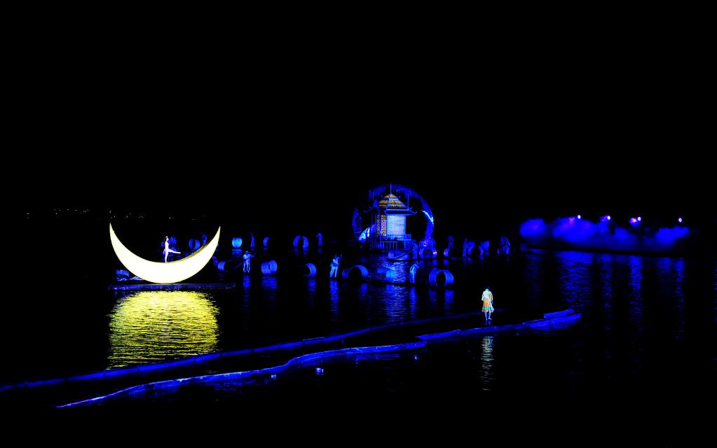 演員在大型山水實景演出《印象·劉三姐》中表演。新華社記者劉勇貞 攝