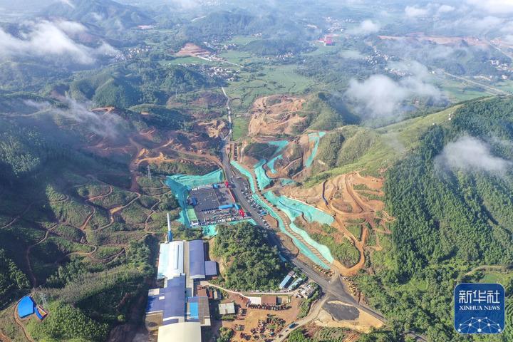 這是在廣西靈山縣拍攝的平陸運河馬道樞紐建設現場(無人機照片)。新華社記者 曹祎銘 攝