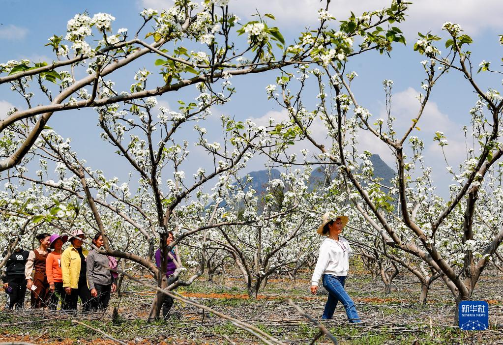 近日,廣西柳州市融安縣潭頭鄉梨花盛開,吸引游人前來游玩拍照。