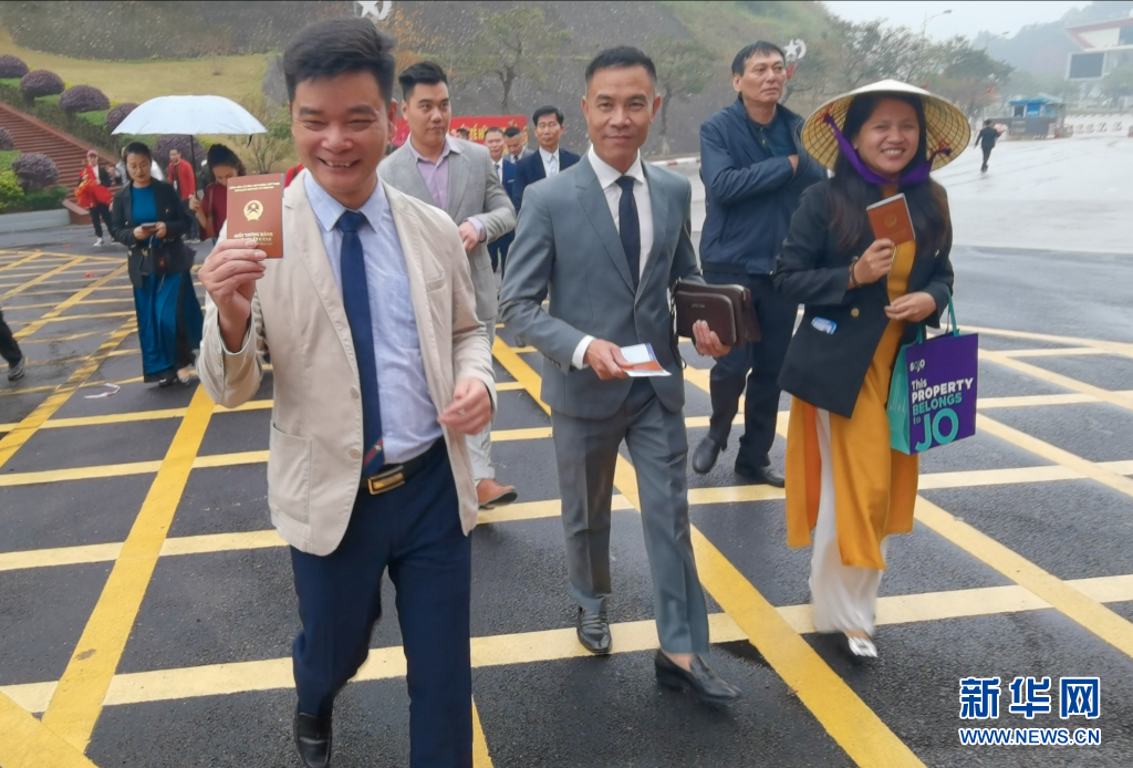越南游客跨過中越邊境零公里邊境線。新華社記者 梁舜 攝