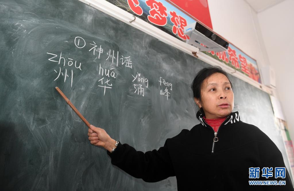 廣西金秀瑤族自治縣忠良鄉山界教學點的教師陶鳳英給學生上課(3月15日攝)。