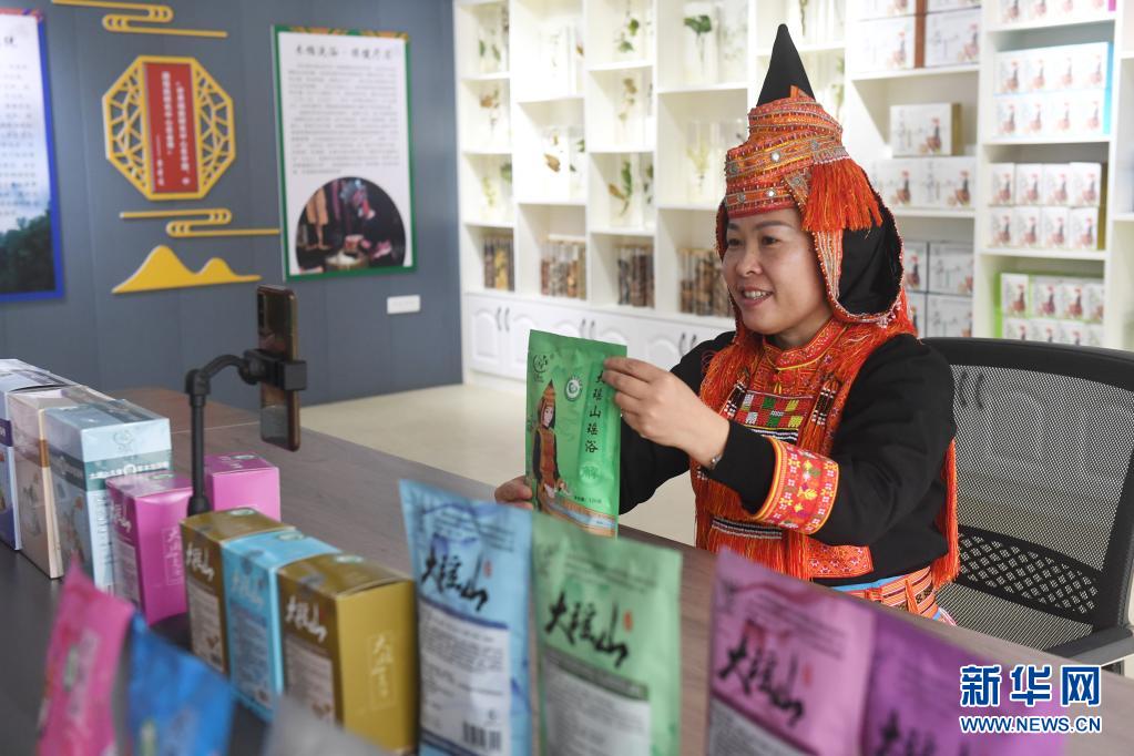 3月16日,在廣西金秀瑤族自治縣長垌鄉平道村一家瑤醫藥生產企業,一名員工通過網絡直播推介產品。