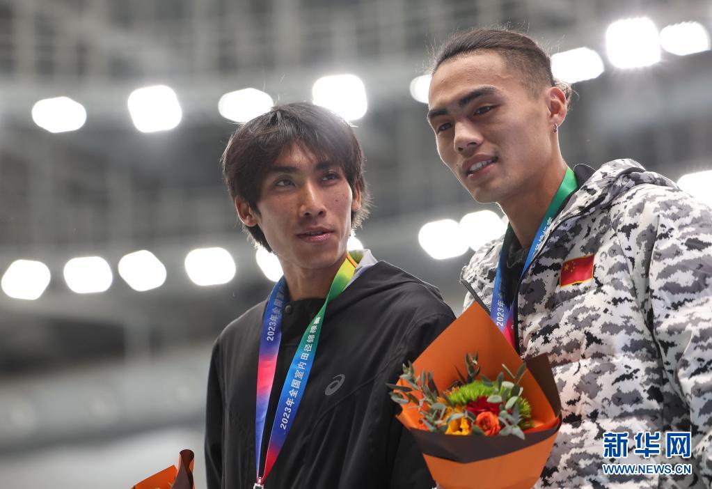 3月16日,冠軍浙江隊選手奚梟橫(右)與亞軍廣西隊選手劉德助在頒獎儀式后。