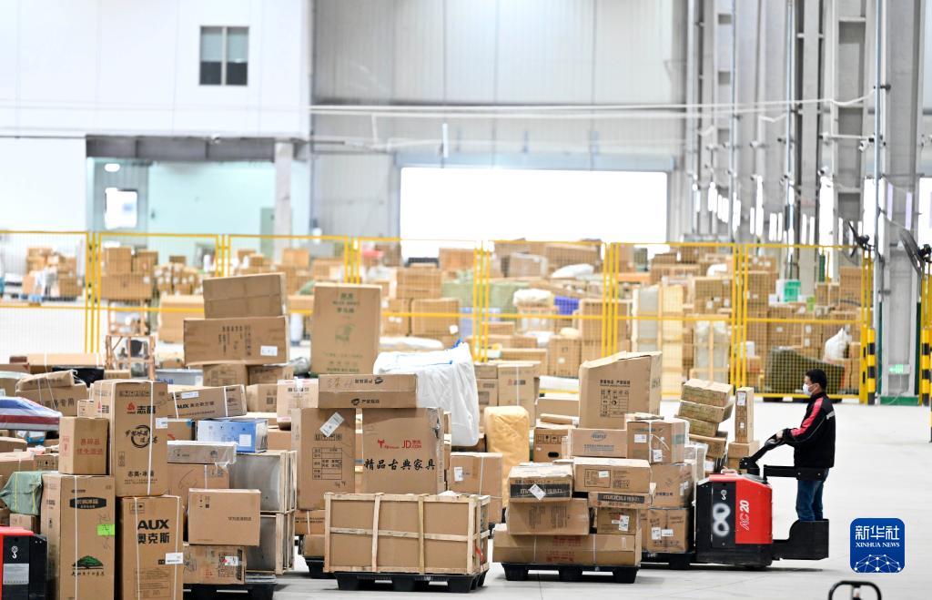 3月19日,在柳州市柳江區新興工業園一家物流企業,工人在倉庫里分揀物流快件。