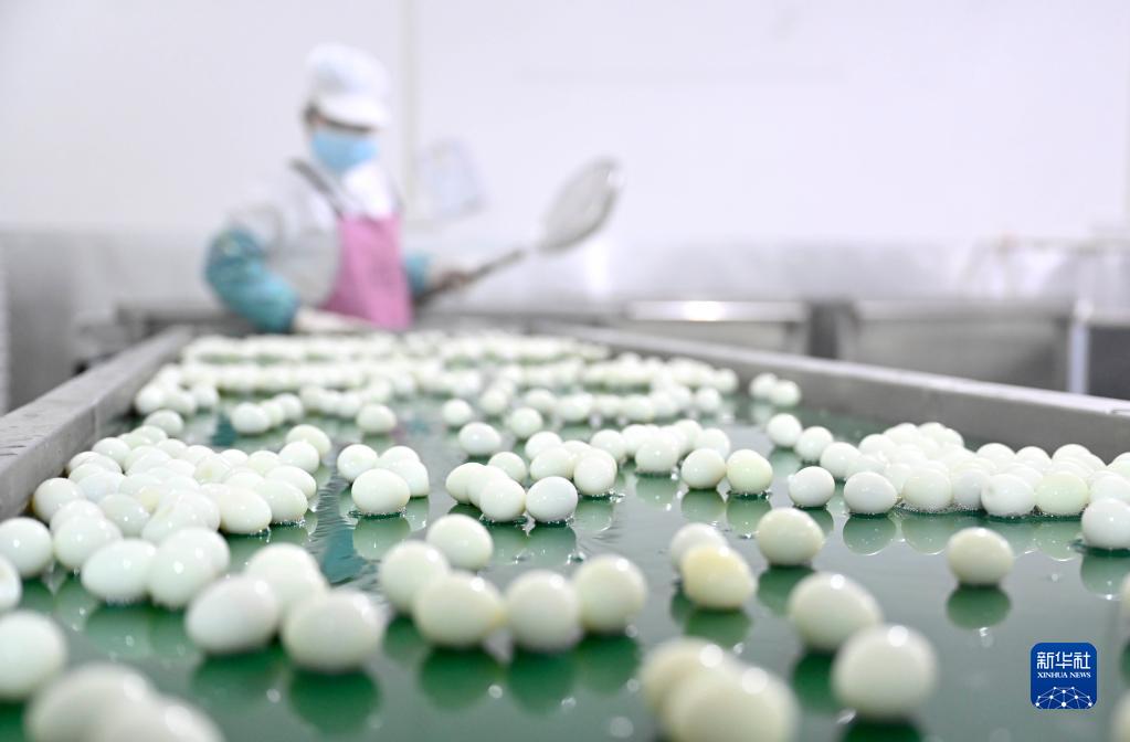 3月27日,在柳州市柳城縣社沖鄉柳州螺螄粉原材料基地里,工人在鵪鶉蛋加工廠車間里忙碌。
